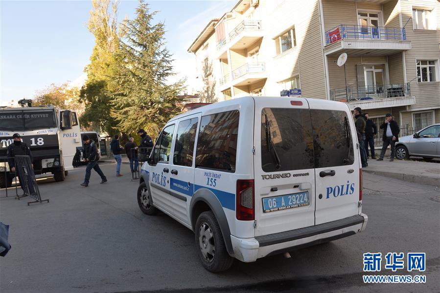 11月4日,在土耳其安卡拉,警车停在人民民主党总部附近。