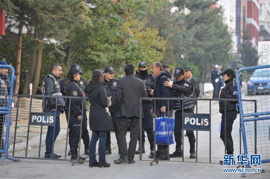 11月4日,在土耳其安卡拉,警察封锁了人民民主党总部周边道路,并对来往人员进行盘查。
