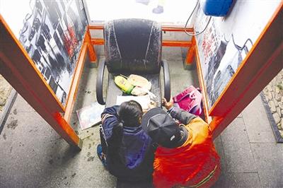 每天15时50分放学后,母亲李代兰都会将陈晓华接到中山东路,陈富康则从不远处搬来一张破旧皮椅和一个沙发坐垫,放进电话亭。“这两样‘家具’都是我捡来的,椅子当书桌,沙发坐垫当凳子。”陈富康说,女儿每天做作业少则一个多小时,多则两三个小时。“冬天黑得早,经常要借着灯光写作业,还好路灯下午五点半就亮了。”