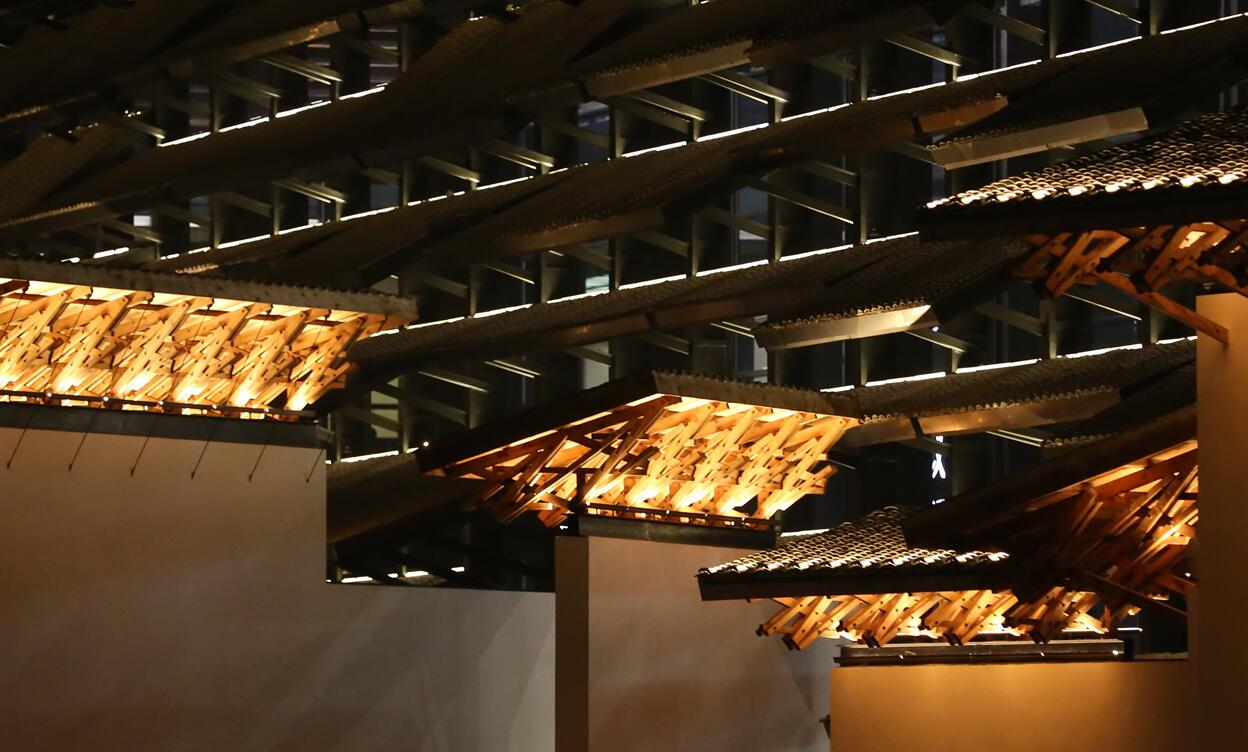 据了解,会展中心由普利兹克建筑奖得主、中国美院教授王澍设计,整体建筑融入大量白墙黛瓦、临水连廊等经典江南水乡特色元素,外立面上采用260万片江南小青瓦,5.1万根钢索以网状肌理寓意互联网,现代科技。图为乌镇互联网国际会展中心夜景。新华网魏炜摄