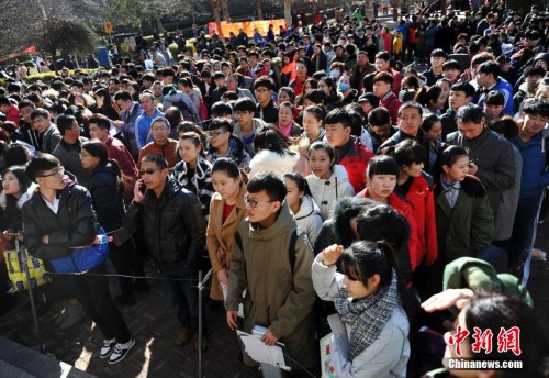 资料图:2016年2月16日大年初九,考生进入位于河北石家庄的“艺考”考场。中新社记者 翟羽佳 摄