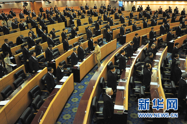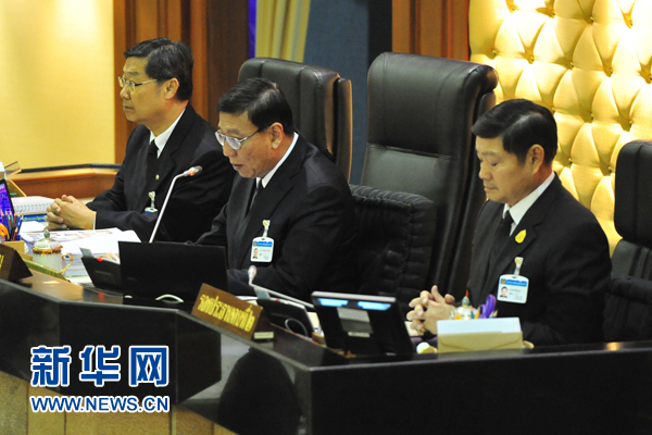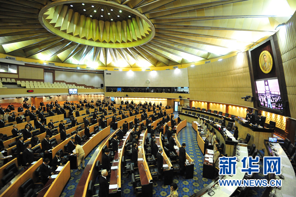 11月29日,在泰国首都曼谷,泰国立法议会召开特别会议。泰国立法议会当日召开特别会议,主席蓬贝宣布立法议会正式确认哇集拉隆功王储继承王位。 新华社发(泰国立法议会供图)
