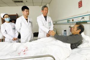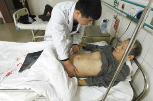 12月12日上午,平山中山医院外一科的病房里,医生正在给王文科检查骨盆恢复情况。“刚送来时他情况特别危急,骨盆骨折严重,多处肠破裂,差点儿丢了命。”医生说一周以后王文科才脱离了生命危险。今年64岁的王文科是五保户,没有直系亲属,入院之后,也没人来陪床照顾。