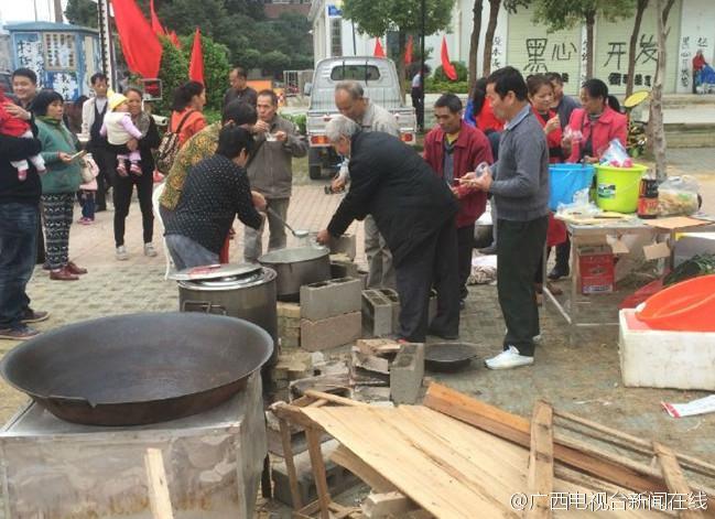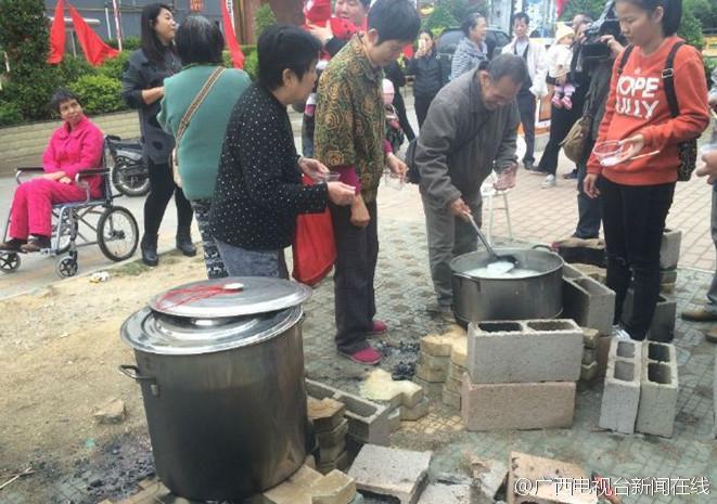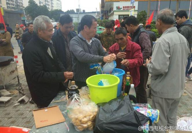 12月14日中午,南宁市新阳国际小区的业主们也在楼下搞了个野炊,不过他们可是一点都高兴不起来,因为野炊的原因是小区又停电停水了,物业服务中心负责人说,目前小区用的电还是属于基建用电,要开发商按时向供电局预存电费才能供电,一旦余额用完,供电也就中断了,对此物业也很无奈。图片来源:广西电视台资讯频道旗舰品牌栏目《新闻在线》官方微博