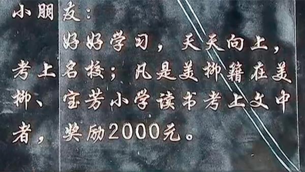 在“百合斋”的入口,邢福浩还刻字承诺,凡村里小孩考上文昌中学,这所当地最好的中学,就奖励2000元。