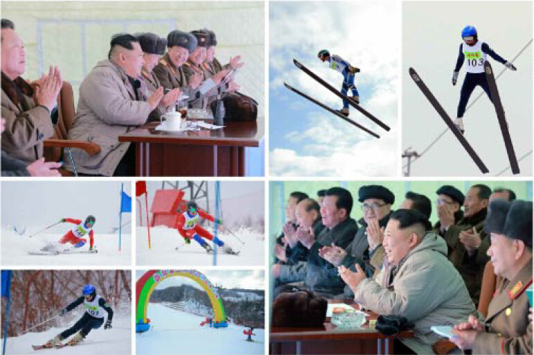 据朝鲜《劳动新闻》12月20日报道,朝鲜最高领导人金正恩观看滑雪比赛。