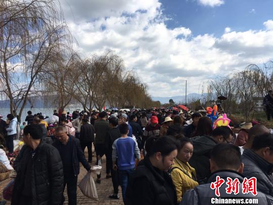 中新网玉溪12月25日电 (龙文驰)25日天还没亮,云南玉溪市星云湖面波光粼粼,但一旁的公路已颇为拥堵,路边站满了游客。密密麻麻的渔船排列在湖岸边,渔民们上下奔走,搬运渔具。他们聚集在此都只为了当地一年一度的盛会——开渔节。
