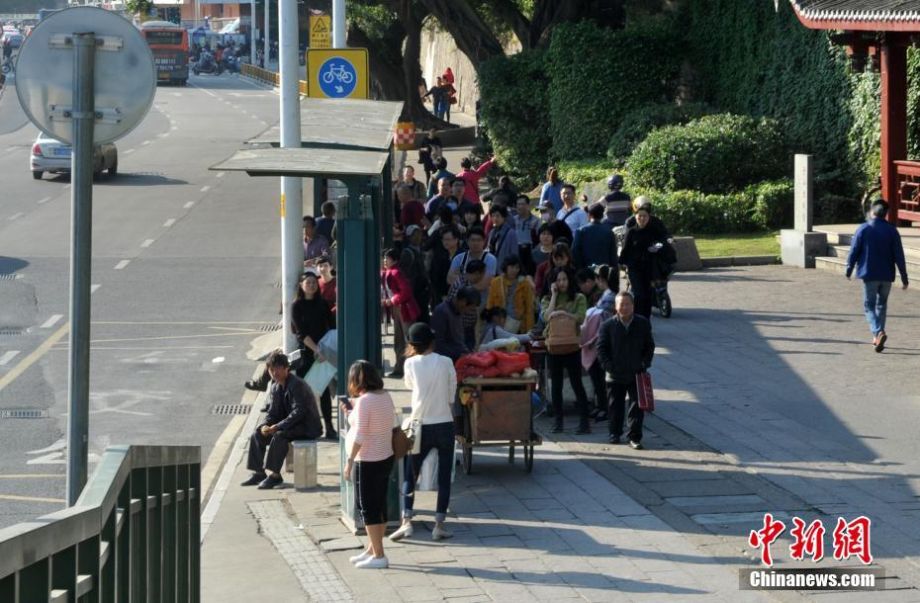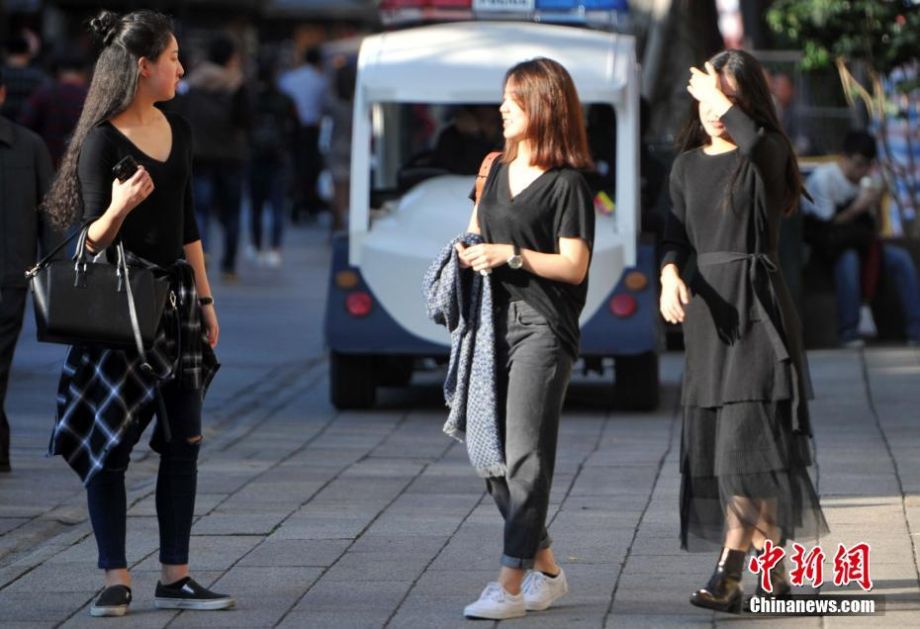 12月26日,出行的民众们纷纷脱下厚厚的外衣。当日,冬至过后福州再现高温天气,最高气温达26℃。 中新社记者 张斌 摄