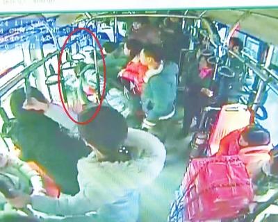 27日,记者在郑州81路公交车监控中看到这样的暖心一幕:2名男子合伙偷一名女乘客包中的钱,不料钱掉落车厢地板,被乘客发现。其中一名偷钱贼准备跳车逃走,被六七名热心乘客合力拽了回来,并移交给警方。