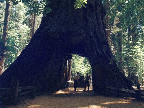 这棵千年老树枝干粗壮,树木底部在1880年被挖空变成“隧道”,宽度可容纳一辆汽车通过。