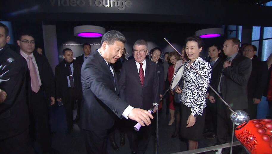 习近平和彭丽媛在巴赫主席夫妇陪同下,参观国际奥林匹克博物馆