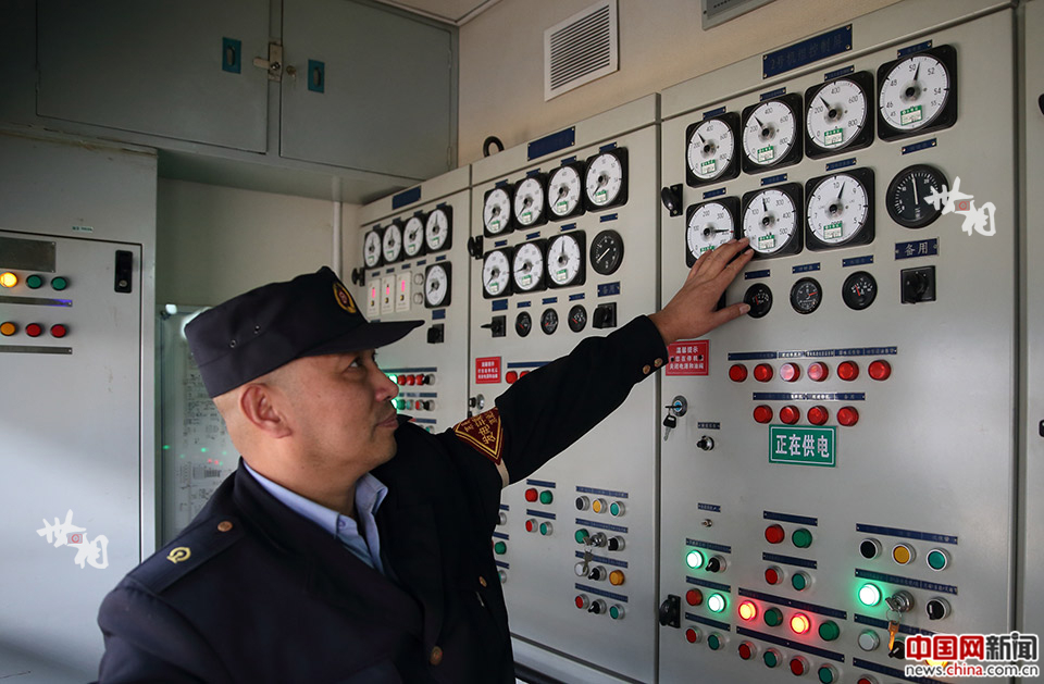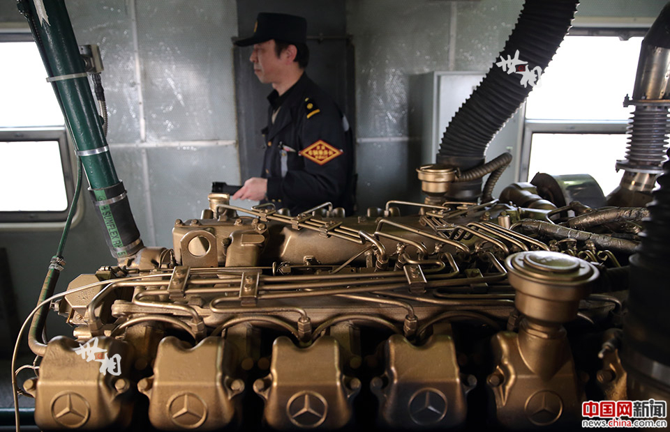 “离开控制间不要超过10分钟。”控制屏机房的门上有一行提示的字。狭长的控制屏机房不足两平方米,除了一面墙上四组控制屏,只能放下两把椅子。控制屏机房的一面墙上布满仪表,记录柴油机组的油压、水温,发电机组的频率、电压、电流。如果仪表有不正常的情况,乘务员必须第一时间进行应急处理。