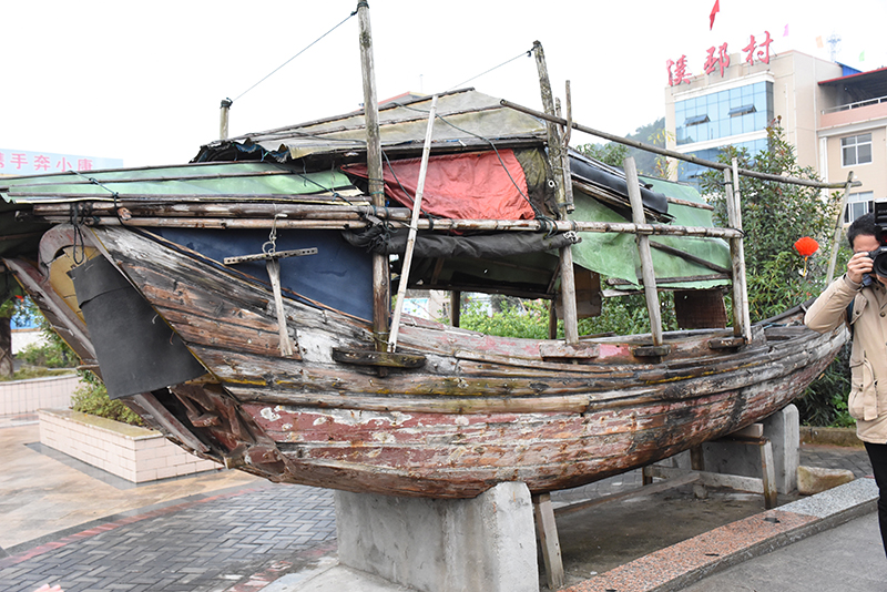 停放在溪邳村广场的一艘破旧渔船,曾经是连家船民的海上“居所”。中国网信网 陈舞阳摄