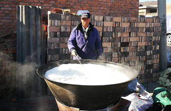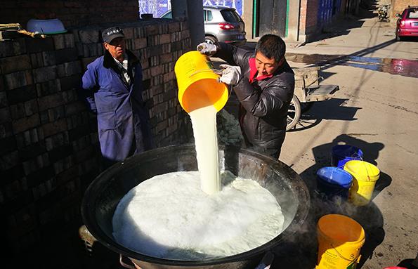 “这不马上要过年了,我打算多做点,给亲戚朋友们都分一分,能吃到二月二呢!”村民董双锁一边煮豆浆一边乐呵呵地说着。
