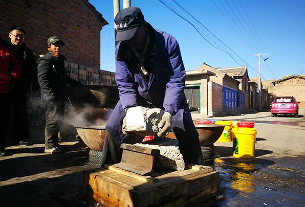 腊月二十二,小年前夕,58岁的董双锁正在和几个邻居在家门口磨豆腐。一粒粒饱满的黄豆,浸泡后被磨成豆浆,雪白光滑,像牛奶一样。