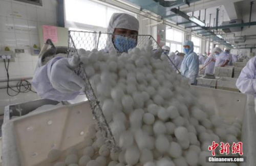 2017年2月8日,北京稻香村员工加紧生产元宵,元宵被粗筛出来。中新社记者 杨可佳 摄