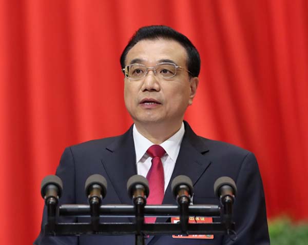 李克强总理作《政府工作报告》。新华社记者庞兴雷 摄