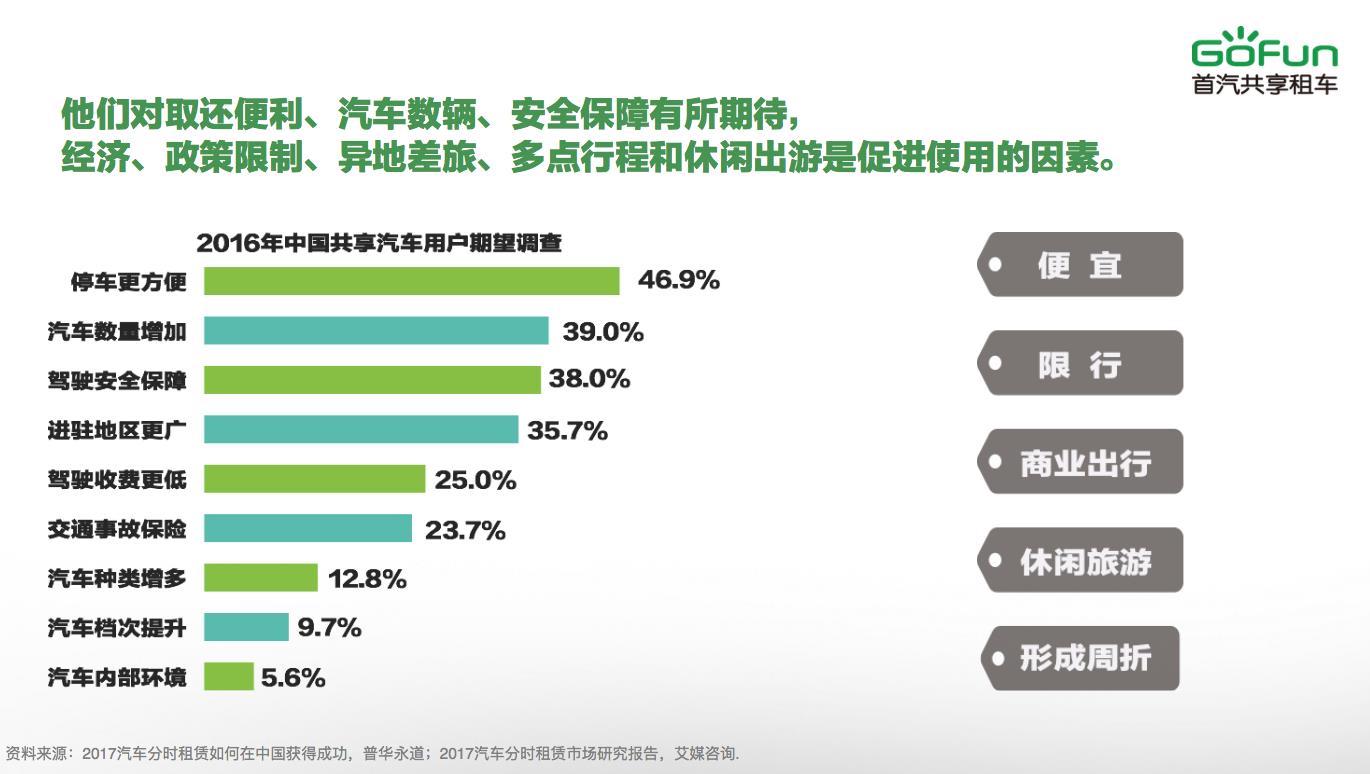 作为共享出行的代表,汽车分时租赁以其独有优势,从各种出行方式中填补不满需求,快速抢占优势场景,成为私家车的前置消费、城市交通灵活性的补充、服务型出行的经济型补充。以暂时性和灵活型的中短途驾车出行场景为主,满足经济、灵活、空间、便利的出行需求。