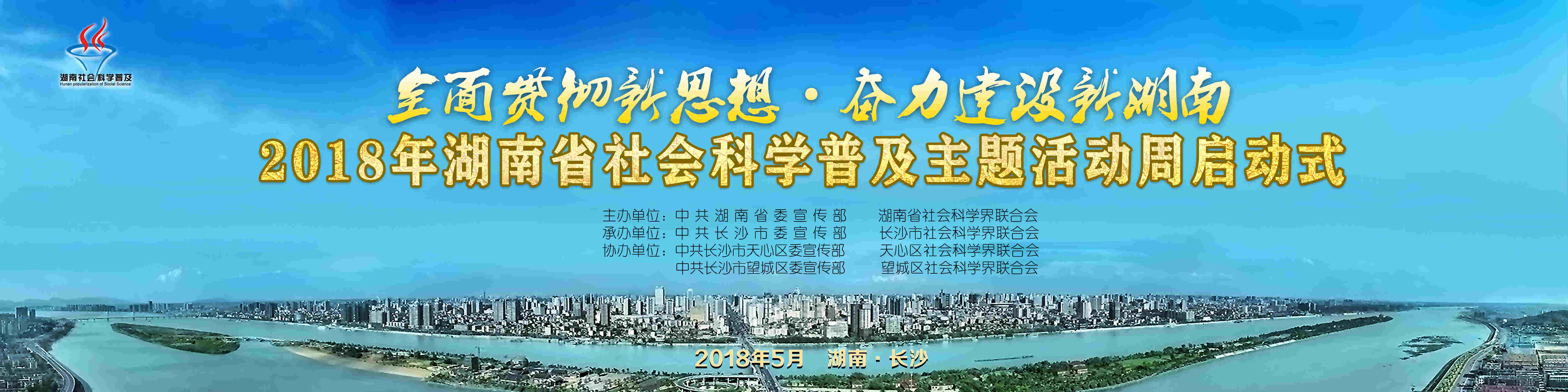 2018年,是贯彻党的十九大精神的开局之年,是改革开放40周年,是贯彻省第十一次党代会精神、决胜全面建成小康社会、实施“十三五”规划承上启下的关键一年。为全面贯彻落实中央和省委的战略部署,服务全省经济社会发展,推动社科普及活动持续深入开展,根据《湖南省社会科学普及条例》有关规定,湖南省社科普及宣传活动组委会办公室定于2018年5月第二周在全省举办以“全面贯彻新思想•奋力建设新湖南”为主题的2018年湖南省社科普及主题活动周。主题活动周将围绕学习宣传贯彻习近平新时代中国特色社会主义思想和党的十九大精神,开展形式多样、丰富多彩的社科普及活动,为提高我省公民人文社科素养,建设富饶美丽幸福新湖南营造良好氛围!