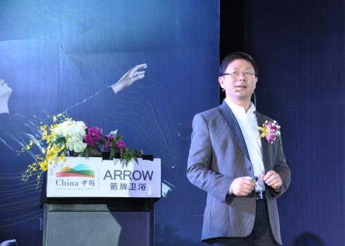 (箭牌卫浴事业部总经理严邦平在会上讲话)