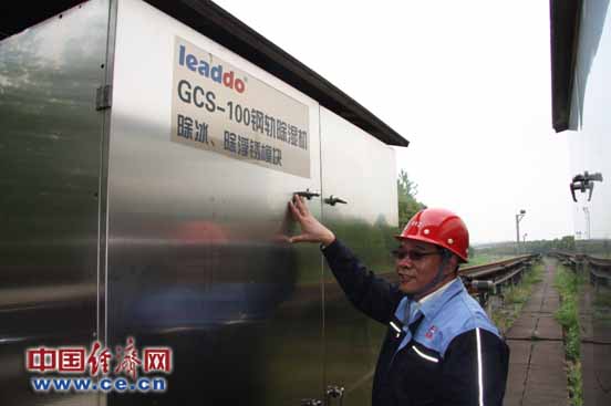 朱林荣介绍GCS-100钢轨除湿机。中国经济网记者佟明彪/摄