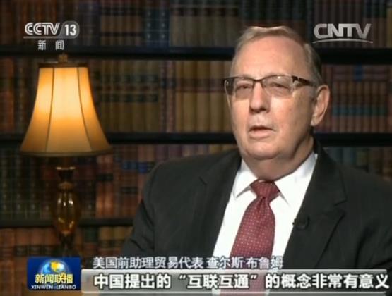 美国前助理贸易代表查尔斯·布鲁姆表示,在逆全球化暗流涌动、贸易保护主义抬头的背景下,习近平主席提出的互联互通的概念真正为当下全世界面临的全球化包容发展的问题,提出了中国的智慧和解决方案。