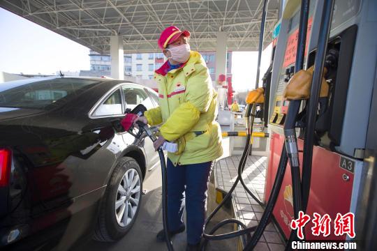 资料图,加油站工作人员正在给车辆加油。张云 摄