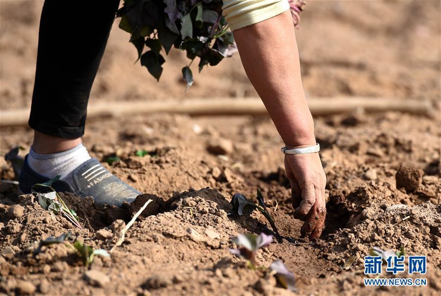 5月21日,辽宁省朝阳市朝阳县南双庙乡农民栽种地瓜秧。辽宁省3月份以来出现的大面积干旱仍在持续。记者从辽宁省防汛抗旱指挥部了解到,辽西锦州、葫芦岛、朝阳、阜新等地区无有效降雨日已达70天。全省农田缺墒面积1470.95万亩,农作物已播种(插秧)面积比去年同期减少1488.43万亩,春播进度受到影响。新华社记者 李钢 摄 图片来源:新华网