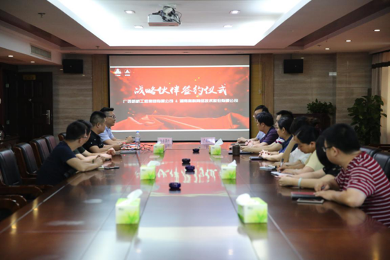双方高层代表出席了签约仪式,奥科股份董事长殷岳元先生与广西路桥周总现场签约广西路桥周总发表了重要讲话。