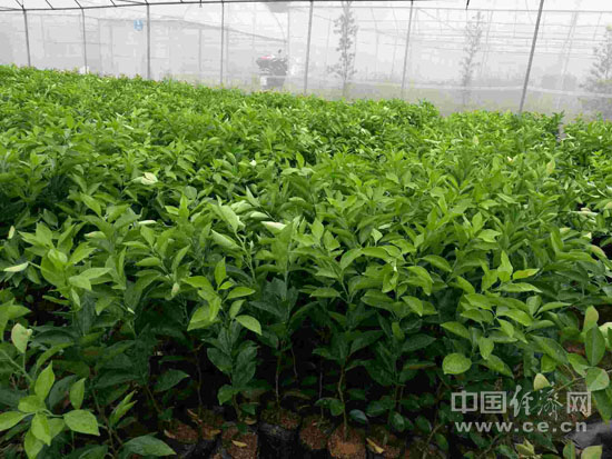 在安远的橙皇果业苗木培育基地,中国经济网记者看到,脐橙幼苗都被培育在网纱大棚中,由工人进行各种养护。致密的网纱能够隔绝有害飞虫,同时透进雨水和阳光。