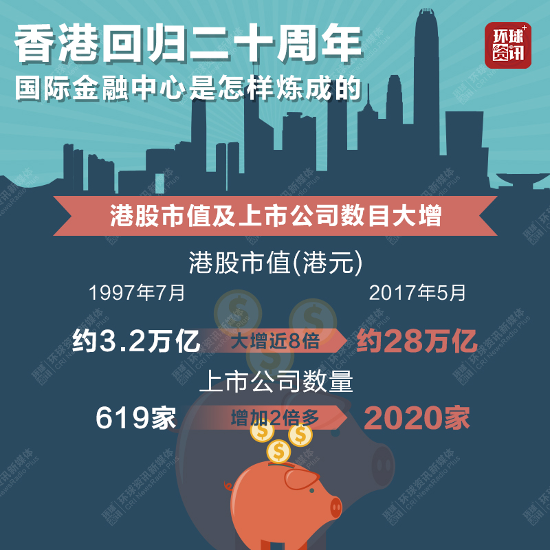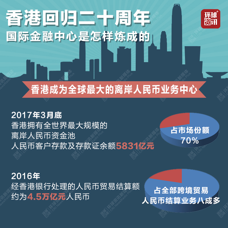 今年7月1日是香港回归祖国20周年纪念日。20年来,香港成长为世界公认的国际金融中心。中国国际广播电台记者为您梳理了港股市场变迁、香港成为全球最大离岸人民币业务中心的过程及香港市场与内地的互联互通等,细数香港打造国际金融中心这20年。