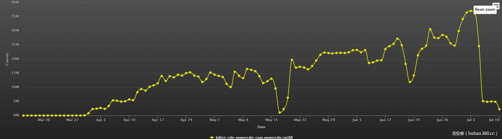 360安全卫士发布的研究报告表示,软件升级“投毒”并不是新鲜的攻击手法,在国内也屡有发生,但此次劫持规模却达到空前。虽然在360发布预警后,不法分子的劫持行为有所收敛,已经降至高峰期的十分之一,但每天攻击量仍高达400万次左右,建议用户在升级软件时开启360安全卫士进行防护。