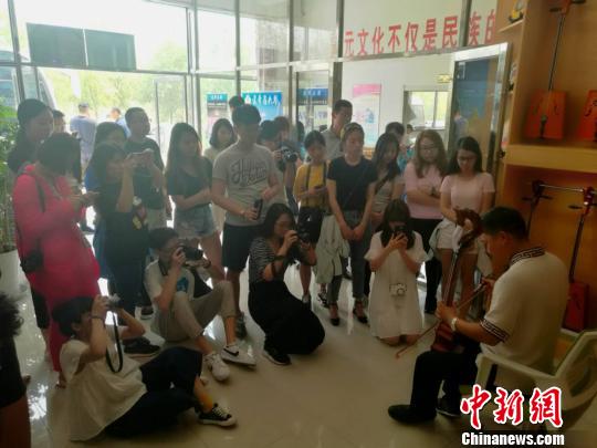 中新网乌兰浩特7月17日电(张林虎)“第一次看到这么独特的民族乐器,它的声音像是在诉说,让人仿佛置身于无边无际的大草原中,感受纯净、透明的音色与绿色草原。”香港专业教育学院学生李楚婷说道。