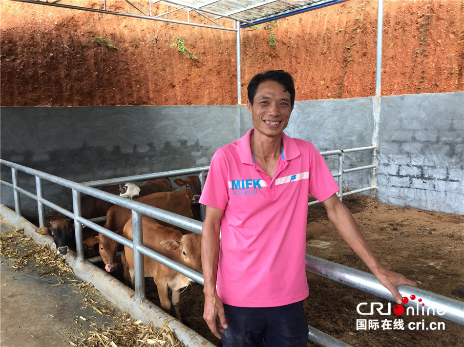农书记说起养牛,可称是半个专家。去年11月底,南岭村通过“双认定”验收,实现了整村脱贫。在这其中,农书记几乎跑遍了乡里村外,发动农民参与养牛,积极脱贫致富,“我们有一户也是这样。她有三个小孩,孩子都很小,老公在广东打工。她原来不愿意养。后来她养了两头以后觉得好,(现在能卖)一万多了,她又再买了两头,(一共)四头。增加了收入,老公又在外面打工,生活慢慢好了起来。”