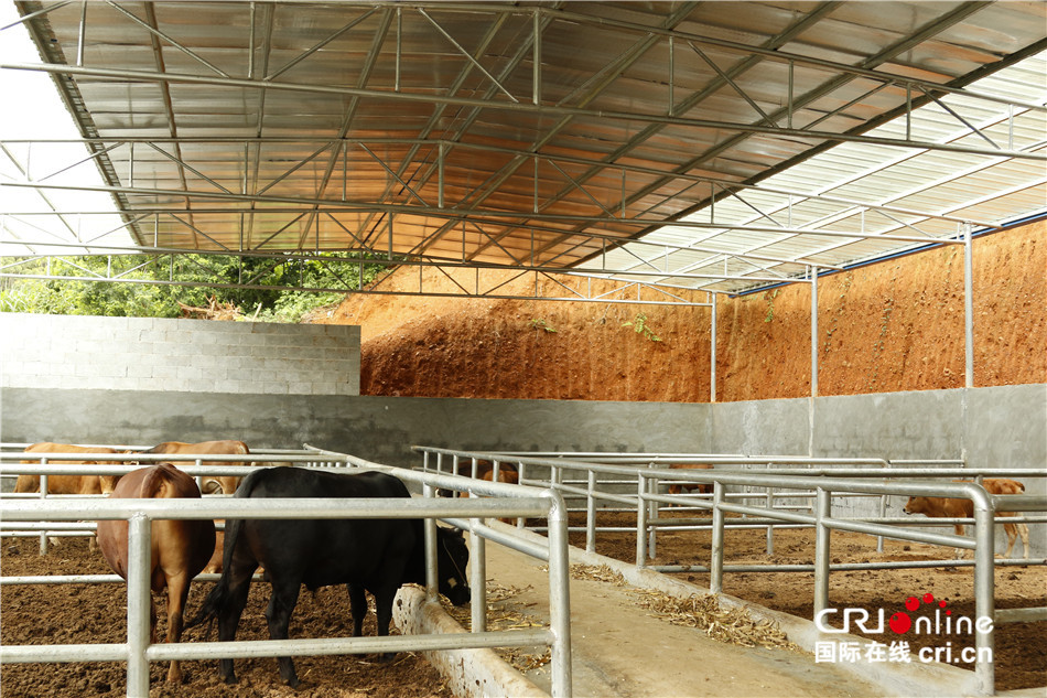 黄克峰原是驮堪乡的建档立卡贫困户,因为养牛收入不错,去年他成功脱了贫。家里的牛棚刚刚建好两个多月,每天他和老伴儿除了照顾家人,下田种地,还会过来喂牛、打扫牛棚。家里的生活安排得井井有条,“(在家养牛)又能照顾老人又能看小孩,也不算什么辛苦的。早上喂了就可以了,到下午五点再喂一次,一天喂两次。(粪便)不是一天清理,(而是)两个月才清理一次。不臭的,拿(牛粪)放到田里,种玉米种草(都可以)拿去(施肥)。”