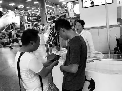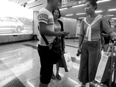 在站外收卡的人不止该男子一人,栏杆附近约有七八个人,其中还有两名女子。有两名拖着行李的女子走向地铁进站口,一名穿短袖的男子挡在两人前方问是否要退卡,其中一名女子掏出几张卡问他:“卡里还有余额。”“我能帮你查余额。”男子掏出手机,将卡放在手机背后,点了几下屏幕。“卡里剩了31元钱,加上押金20元,我一共给你41元吧?”另外一名女子说:“你少收点吧?”该男子说:“少收你两块吧,成不成?”女子点头,于是男子掏钱,女子将卡给他。每一名收卡人收取的费用不等,其中有一名女子向乘客收15元的费用。
