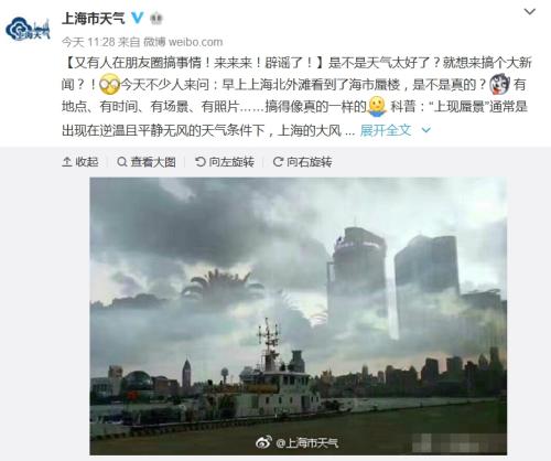 上海北外滩出现海市蜃楼? 气象部门辟谣:P图太假