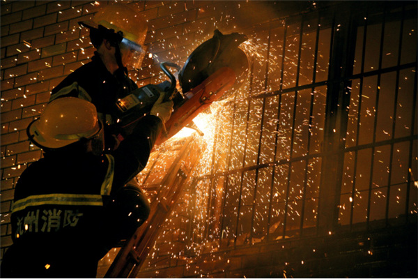浙江省杭州市萧山区党山镇一居民房起火,消防党员攻坚组队员通过无齿锯、机动链锯等设备切割开居民房设置的防盗窗,飞速转动的锯片与栏杆碰撞,火星四溅,最终,消防员通过窗户成功救出被困群众。