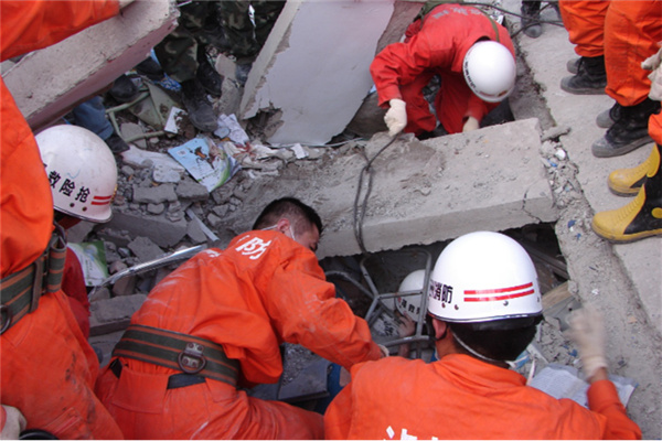 在地动山摇的时候,面对断瓦残垣的废墟,他们义无反顾迅速驰援。撬开残垣、搬走碎砖瓦砾,用双手托起沉重的灾难,挖出一个个被埋的群众。他们不知疲倦的身影,成为灾区一道永不消逝的风景。