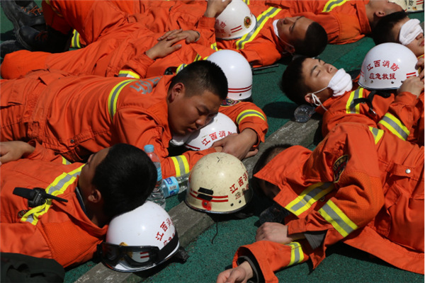 消防官兵有血也有肉,他们不是铁人,他们也需要休息。在“2.26”学前巷居民楼楼房坍塌事故救援中,连续奋战了十几个小时的江西省萍乡市消防官兵们利用救援间隙抓紧时间休息,因为下一场战斗马上就要到来。