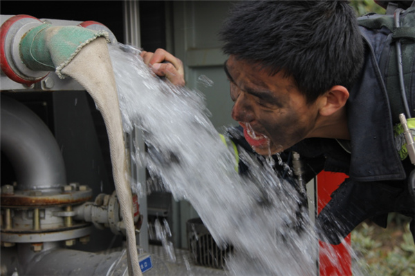 去年,一钢铁厂发生罐体火灾,火焰的炙烤让消防官兵口干舌燥,大火扑灭后,一位入党没多久的小消防兵还来不及脱去战斗服,便迫不及待地用水滋润那干燥的喉咙,感受那胜利后的丝丝清甜。