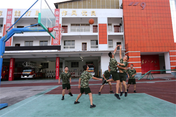在训练和学习之余,四川省简阳市消防队也会组织开展一些运动活动,其中,篮球是战士们最喜欢的运动。在运动中,让身体得到进一步锻炼,也暂时放松了平常绷紧的神经。