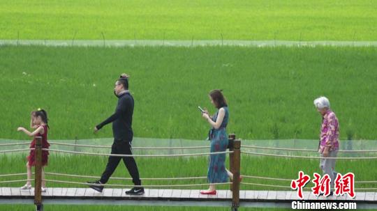 今年7月,江达米业在2000亩连片水田上搭起了木栈道,做起了观光农业,吸引不少游客到这里体验田园风光。“现在城市化的环境很难看到这种大面积的绿地。”游客韩女士说。