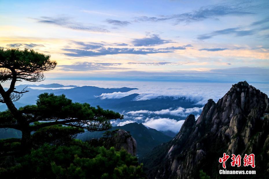 8月10日,黄山暴雨过后,游客一大早来到海拔1860米的炼丹峰观日出。5时32分,太阳出来了,从山峰背后,云海之中缓缓升起。红彤彤的霞光拥着太阳,东方的天空被渲染的五彩缤纷。渐渐,云海、山峰披上了金光闪烁、美丽耀眼的霞光。 李金刚 摄