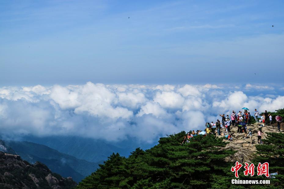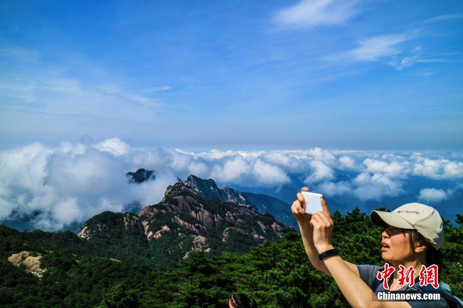 中外游客在黄山上拍照留念。 李金刚 摄