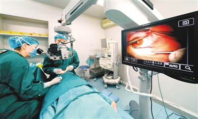 “行知中国”助力关爱西部青少年眼健康。图为兰州普瑞眼科医院医生在手术室为高三学生罗进荣实施眼科手术。新华社记者 陈建力摄