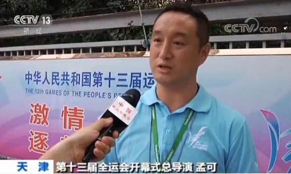 第十三届全运会开幕式总导演 孟可:“这次开幕式的亮点,首先值得期待的是3D地面投影和人完美配合的视觉效果;第二就是体育和群众元素的相结合;第三以天津元素展示中国故事展示中国气派。”