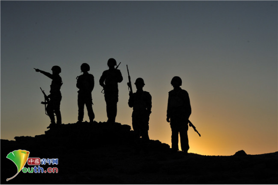 夕阳下,永兴边防派出所官兵的青春剪影。永兴边防派出所供图