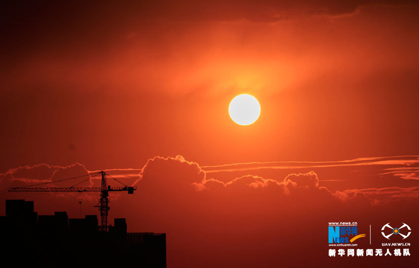 8月26日18时左右,黄埔区红彤彤的太阳格外显眼。新华网发(曾铠钢 摄)