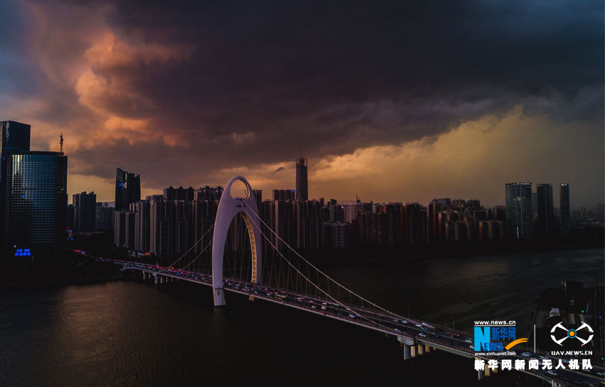 航拍猎德桥上空,乌云笼罩。新华网发(郭志城 摄)